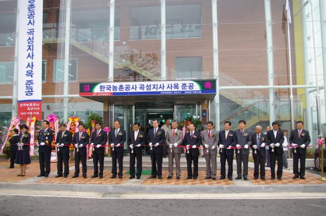 한국농촌공사 곡성지사(지사장 남도희)는 23일 곡성읍 읍내리 신사옥에서 홍문표 한국농촌공사 사장과 조형래 군수를 비롯한 도의원, 군의원, 경찰서장, 교육장 등 각급 기관 단체장, 지역주민 등 200여명이 참석한 가운데 신사옥 준공식을 가졌다.(사진)