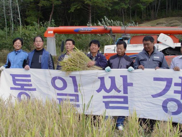 가을걷이를 함께 한 농민회원들은 "날씨가 좋아 낱알이 잘 여물어 수확량도 많을 것이다"며 "남과 북이 이념을 떠나 함께 나누는 상징적인 자리에 함께해 영광이며 우리가 모두 굶주리지 않고 잘 살았으면 좋겠다"고 말했다.