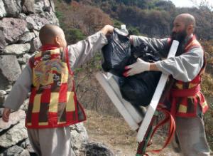 가을 단풍철을 맞아 연일 많은 등산객들로 붐비고 있는 담양 금성산성이 다른 관광지와는 달리 주변이 깔끔한 것은 금성산성 내 동자암 청산 스님 가족들의 노력이다.