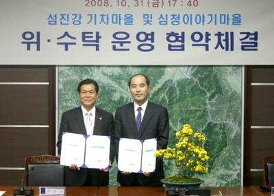곡성군과 한국철도공사의 자회사인 코레일투어서비스는 31일 곡성군에서 섬진강기차마을에 대한 위탁운영 협약을 체결했다.(사진)