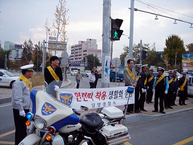 담양경찰서(서장 조종림)는 지난 6일 출근시간대에 맞춰 백동사거리에서 경찰관 및 모범운전자회 회원 등 50여 명이 참가한 가운데 ‘안전띠 착용 생활화’ 캠페인을 실시했다.(사진)