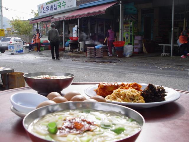 궂은 날씨만 아니면 대개 사람들이 가게 안으로 들어가지 않고 평상에 앉아 먹는데, 아름답고 정겨운 천변 풍경을 바라보며 뜨거운 국물을 마시거나 고추 가루를 넣고 비벼내어 윤기가 흐르는 비빔국수를 먹기 위해 연신 젓가락을 하는 광경은 또 하나의 잊지 못할 풍경이 된다.