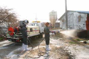 곡성군은 19일 관내 30개 공동방제단 77개 팀을 동원해 방역소독이 취약한 소규모 축산농가 2330개소에 대한 일제소독을 실시했다.(사진)