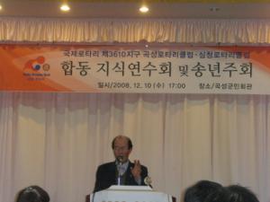 이날 행사는 곡성, 심청 양 클럽이 회원들의 로타리 지식함양과 로타리안으로서의 자세확립을 위해 광양출신 김정삼 前총재와 곡성클럽 박창래 역대회장을 연사로 초빙, 특별강의를 들었다.