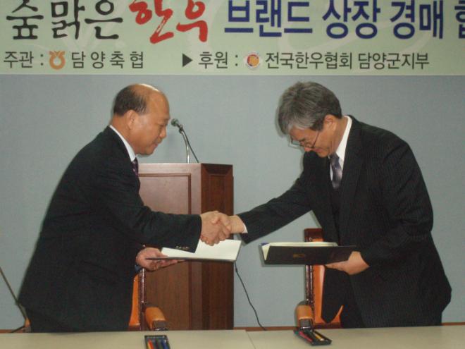 한편, 이날 협약식에서는 이종진 씨(65, 담양읍)의 소 1두가 kg당 19,789원의 최고 경락가로 낙찰돼 962만원을 받은 것을 비롯, 첫 상장식에서 ‘dy대숲맑은한우’의 두당 출하 가격이 평균 690여만원으로 일반 경락가에 비해 30% 정도 높은 가격대를 형성했다.