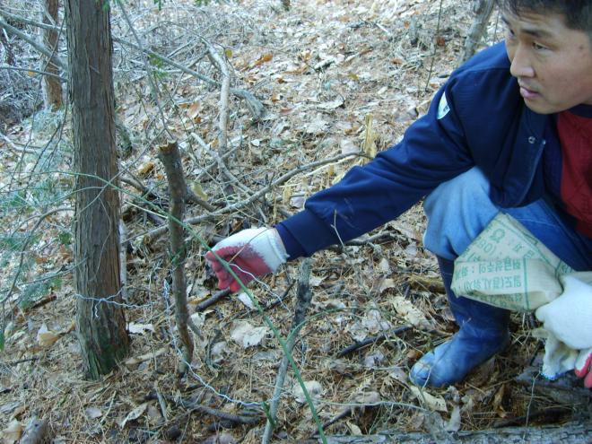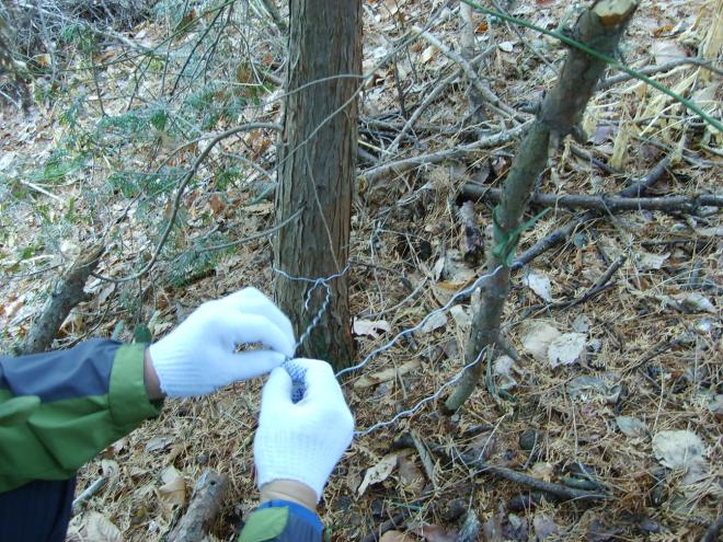 ▲ 올무. 노루를 잡기 위한 것으로 보인다. 지난달 30일. 금성면 대성리 인근 야산에 설치된 올무를 한 주민의 협조를 얻어 발견하고 철거했다. 이날 수거한 밀렵도구는 올무를 비롯해 모두 4개. 주민들은 인가 주변은 물론 야생동물들이 다닐만 한 길목이면 어김 없이 사냥도구가 설치됐다며 철저한 단속을 요구했다. /서영준 記者