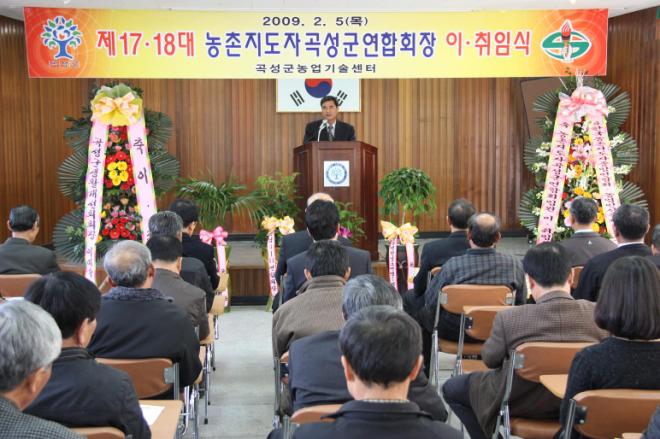 곡성군농업기술센터(소장 손한길)에서는 지난 5일 농업기술센터 회의실에서 농촌지도자회 임원과 내외빈 등 50여명이 참석한 가운데 제 17?18대 농촌지도자곡성군연합회 회장 이취임식을 가졌다.(사진)