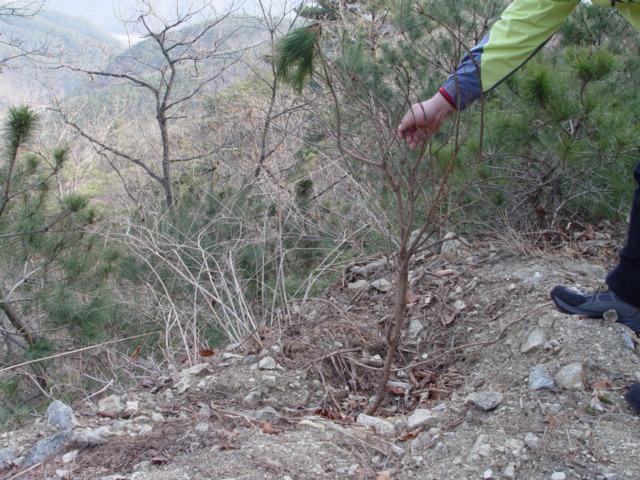 이곳에서 좀 더 정상 쪽으로 가다보니 이미 소나무 여러 그루를 캐 옮긴 자국이 선명히 나 있었다. 버려진 가지상태를 보니 불과 2~3일전에 작업해 간 것으로 보였다.