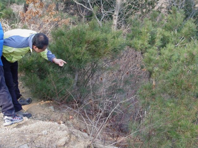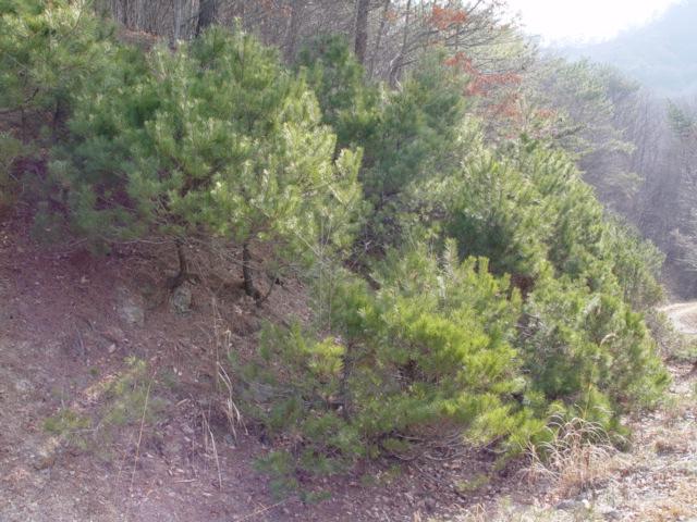 조금 더 오르니 이번엔 기괴한 수형의 소나무 군락이 가지다듬기 작업을 당한 채 서 있었다. 누군가가 후일 분을 떠 반출해 갈 요량으로 손질해 놓은 것이다.