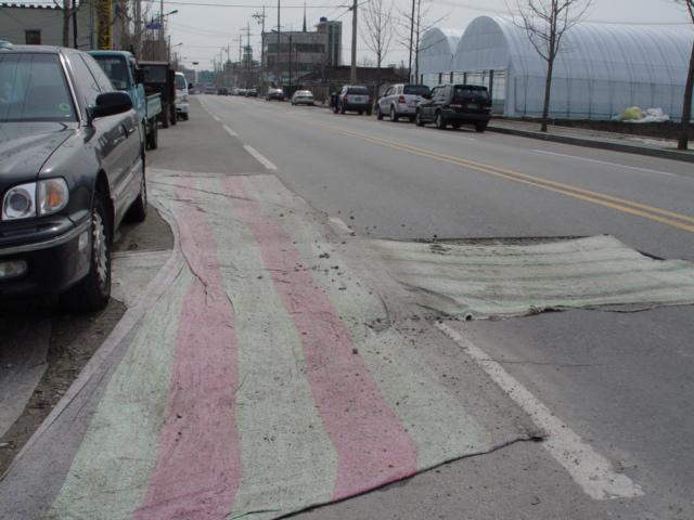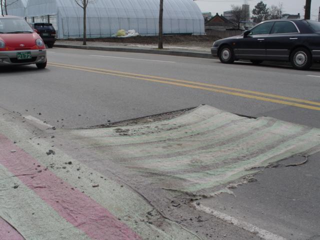 이 때문에 매설공사 현장 위로 지나던 일부 차량의 타이어가 못에 훼손될 상황에 처해 있는 가하면 노약자 등 보행자들은 지면으로 튀어나온 고무조각과 못 때문에 안전 사고 발생이 우려되고 있다.