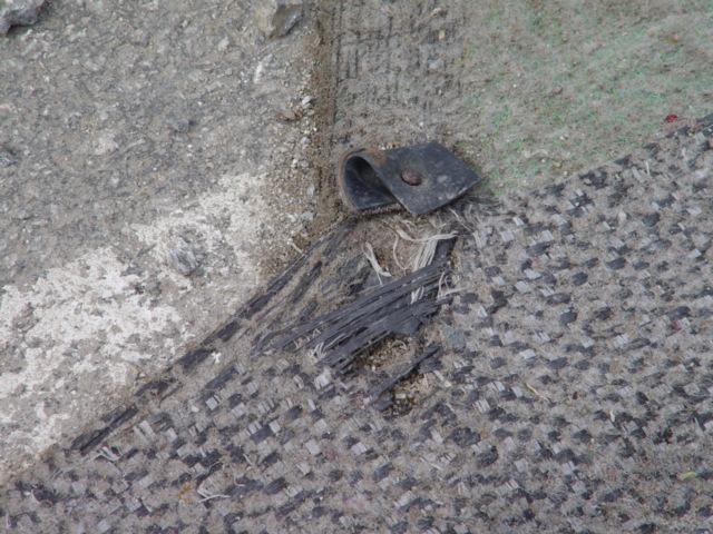 이 과정에서 시공업체 측은 부직포를 고정하려고 아스팔트 도로 위에 고무 조각을 덧대어 못질했다.(사진)