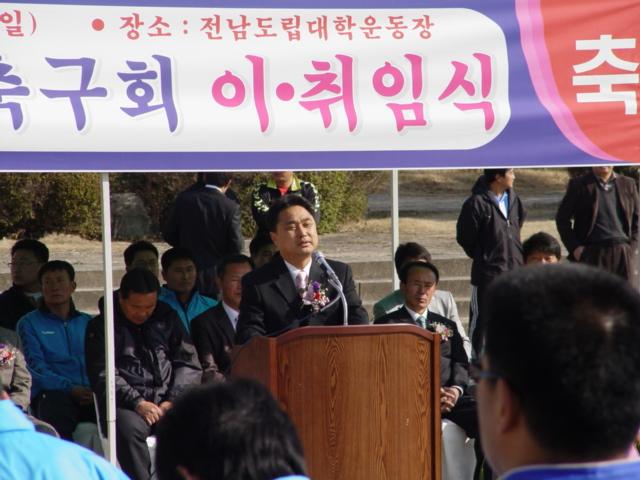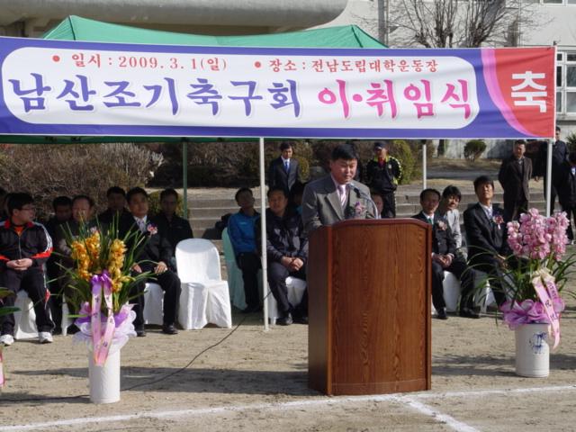 지난 1일 남산조기축구회는 도립남도대학 운동장에서 박종원 의원을 비롯 강만희 축구협회장 및 기관 단체장과 축구동호인 및 회원 등 100여명이 참석한 가운데 제 26·27대 회장 이·취임식을 가졌다.(사진)