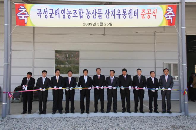 곡성군 배 영농조합(회장 이재균)은 25일 목사동면 신전리 미국 수출배 단지에서 이정현 국회의원과 조형래 곡성군수, 조합원 등 200여명이 참석한 가운데 곡성군 배 영농조합 농산물 산지유통센타 준공식을 가졌다.(사진)