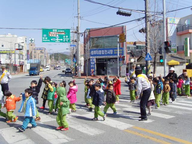 이날 교통안전교육은 ‘안전한 어린이 등하굣길 만들기’를 위하여 유치원 어린이 상대 횡단보도 건너기, 안전한 보도통행, 교통사고 예방 요령 등을 교육하였으며 경찰서에서 제작한 호루라기를 배부 어린이들이 직접 횡단보도 교통수신호를 보내는 등 참여교육을 실시했다. /서용진 記者