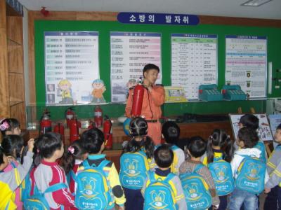 이날 실시한 소방안전체험교육은 유아용 교육프로그램으로 우리는 안전어린이 교재에 수록된 화재, 교통, 놀이터안전, 가정에서의 안전 등을 대형 스크린 통해 재미있게 배울 수 있도록 했으며, 홍보배너, 119전화기, 우리집대피도 등 교구를 이용한 안전교육과 119체험관에서 실시되는 대피요령, 비상벨를 누르는 등 화재 시 나타나는 현상을 알 수 있다.