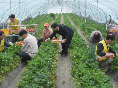 영농철 농촌일손이 턱없이 부족한 가운데 농협중앙회 곡성군지부(지부장 이영기)는 임직원 10여명이 지난 15일 신리마을 하우스에서 농촌일손돕기 일환으로 딸기 수확 및 하우스 속비닐 제거 작업을 실시했다.(사진)