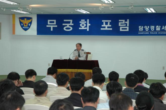 담양경찰서(서장 안병갑)는 지난 15일 경찰서 대회의실에서 직원 110여명이 참석한 가운데 4월 중 무궁화 포럼을 개최하고 ‘공직자의 윤리의식’에 대한 주제로 경찰서장 특별강의를 실시했다. /서용진 記者