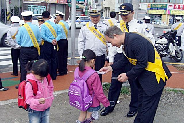이날 캠페인에서는 ‘어린이보호구역 내 안전한 통학로 조성’과 ‘어린이 교통사고 제로화’를 목표로 자체 제작한 플라스틱 자와 홍보전단을 배포했으며, 운전자 등을 상대로 ‘안전띠 착용생활화 운동’ 홍보도 병행했다. /서용진 記者