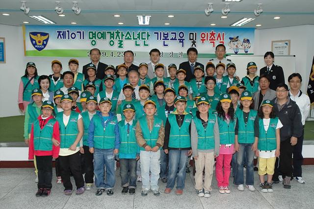 담양경찰서(서장 안병갑)는 지난 23일 경찰서 대회의실에서 마음놓고학교가기추진협의회(회장 장명호), 중앙생활안전협의회(나승수), 중앙자율방범대(정관영) 및 신규 명예경찰소년단(단장 김민혁 한재초6년)과 지도교사, 경찰관 등이 참석한 가운데 제10기 명예경찰소년단 위촉식을 가졌다.(사진)