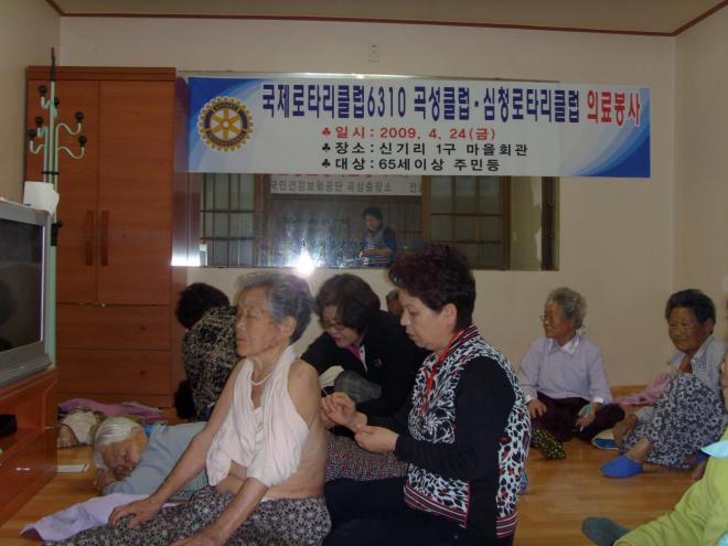 국제로타리 3610지구 6지역 곡성클럽(회장 임종두)과 심청클럽(회장 오정숙)은 지난 24일 곡성읍 신기리 1구 마을회관에서 65세이상 마을주민30여명을 대상으로 침뜸의료봉사활동을 했다.(사진)특히 이날 행사에는 뜸사랑 김남수회장의 제자이자 곡성가정교회 양우석 목사 사모인 신춘자 뜸사랑 교수가 함께 봉사에 참여했다. /주성재 記者