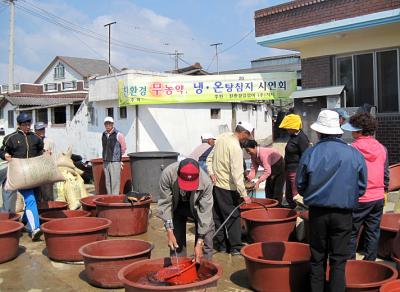 곡성군농업기술센터는 성공적인 친환경 벼 무농약 재배를 위해 종자소독에서부터 철저하게 관리하고자 입면사무소와 입면농협, (주)지디와 협력해 지난 19일부터 27일까지 입면지역의 11개 친환경농업단지에서 볍씨 소금물가리기와 냉수온탕 침법을 이용한 종자소독을 실시했다.(사진)