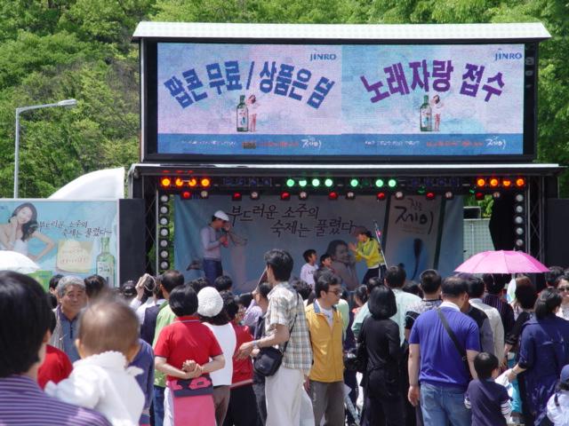 대나무숯으로 3번 걸러 맛이 깨끗한 것으로 이름난 참이슬을 비롯 순한 소주 전쟁을 선포한 J를 시판중인 (주)진로는 대나무박람회장은 물론 지압교 근처에 자리를 잡고 주행사가 없는 자투리 시간을 활용, 대나무축제를 보러온 관광객들을 대상으로 노래자랑 및 무료 팝콘을 제공하는 등 축제 자원봉사 역할을 톡톡히 하여 시선이 집중.