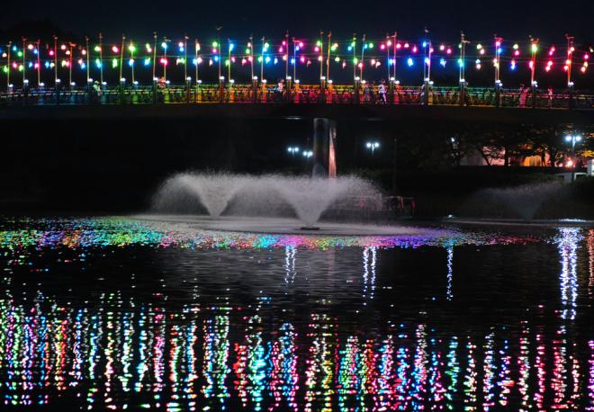 오색 소망등 불빛과 하천에 반영된 불빛의 환상적인 조화는 연인들을 끌어들이는 마력으로 작용하고 있다.