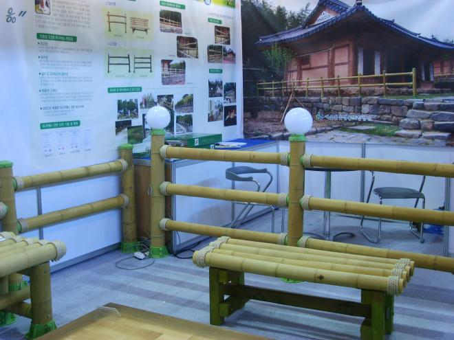 친환경 조경용 대나무 휀스와 의자에 관심이 집중됐다.