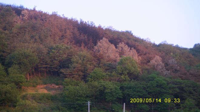 엊그제 발생한 산불로 집안 선산이 검은 숯으로 변하는 화마를 겪은 S씨. 다행이 조상을 모신 묘지는 화마를 피했지만 산 정상부터 산중턱까지 모두 불에 타버려 전봇대 몸통만한 소나무의 가지들이 다 떨어지고 산 전체가 벌겋게 변해버려 흉한 모습만 남았다.(사진)