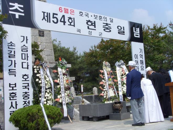 제 54회 현충일 추념식이 오곡면 승법리 소재 곡성충의탑 광장에서 조형래 군수, 박사차 군의회 의장, 허남석 경찰서장을 비롯한 각급 기관단체장과 보훈단체장, 국가유공자 유족 등 400여명이 참석한 가운데 엄숙하게 거행됐다.(사진)