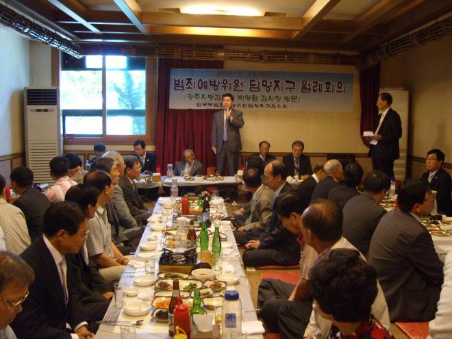 법무부범죄예방담양지구협의회(회장 손규만)가 지난 15일 읍내 모 음식점에서 광주지방검찰청 박영렬 검사장을 모신 가운데 국승준 고문을 비롯한 회원 60여명이 모인 가운데 월례회를 가졌다.(사진)