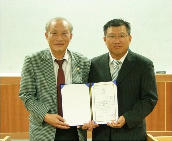노동부에서 주최하고 전남대학교경영연구소외 5개단체에서 주관한 2009년도 호남, 제주지역 소셜벤쳐경연대회에서 곡성읍 정연하 씨(사진 왼쪽, 강촌펠릿 대표)가 최우수상을 수상해 지난 3일 광주 호남사회적기업지원센터에서 시상식을 가졌다.