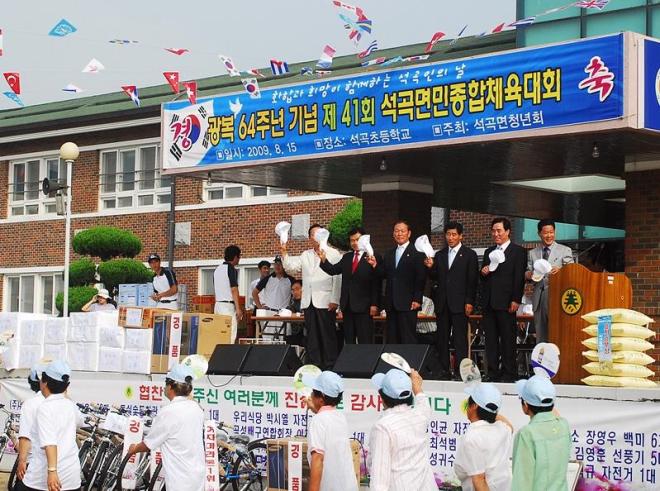 매년 광복절에 열리는 주민체육대회는 올해 41년째로 ‘늘 푸른 석곡, 화합하는 면민, 발전하는 석곡’이란 주제로 깨끗하고 맑은 대황강과 순박한 인심이 묻어나는 돌실의 고장임을 다시한번 과시했다.