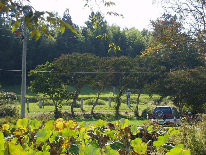▲ 마을 앞 무애선생의 묘소와 그가 심은 배롱나무가 보인다.