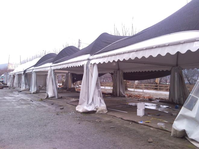 지역경제 활성화 차원에서 양성화했던 농특산물임시판매장이 11일 철거작업이 한창이다.(사진)