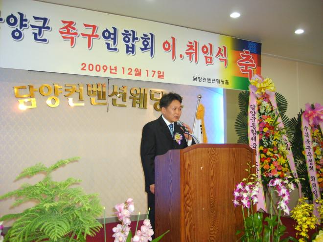 특히 “족구 불모지인 담양 족구발전을 위해 노력한 역대 회장들의 노고에 누가 되지 않도록 임기 동안 최선의 노력을 다하겠다” 며 “대회때마다 좋지 않은 기상조건으로 惡名(?)을 떨치고 있는 대나무배 전국 족구대회의 실내경기 추진 및 전국규모의 족구대회 출전을 통해 담양군을 널리 알리는 민간 홍보사절 역할도 마다하지 않겠다”고 각별한 愛鄕心을 표출했다.