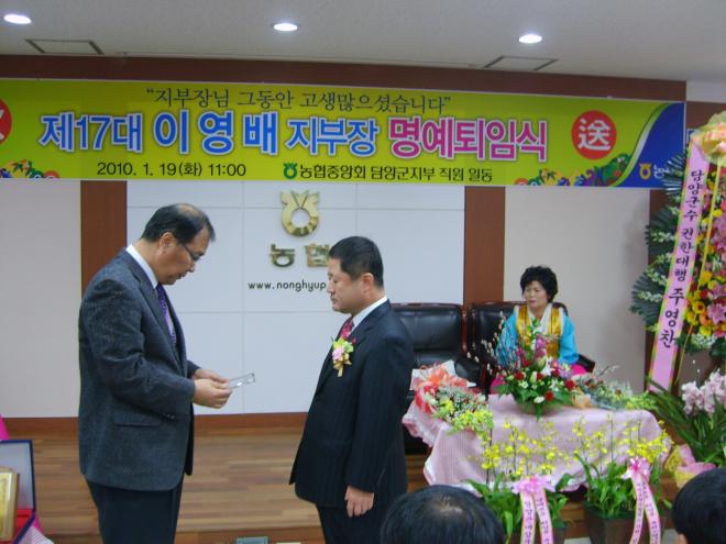 이 지부장은 “농협은 종합농협체제에서 신용과 경제를 분리하여 전문조직으로 거듭나는 길목에 들어섰다”며 “이것은 위기보다는 희망의 전조로 농협은 주주의 이익을 우선하는 주식회사와는 달리 약자인 농업인의 사회적 경제적 문화적 지위 향상을 목적으로 사업을 영위해 왔고 앞으로도 이같은 목적은 변하지 않을 뿐만 아니라 농협의 미래를 책임질 우수한 후배들이 있기 때문이다”고 농협에 대한 진한 사랑을 감추지 않았다.