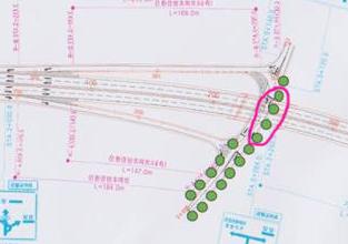▲ 익산청이 제안한 수정안. 익산청 관계자는 "수정안을 따를 경우 빨간색 원 안 4그루만 다른 곳으로 옮겨 심으면 된다"고 주장했다. 그러나 문제는 메타세쿼이아 가로수의 그루 수가 아닌 '교차로를 입체교차로 할 것이냐 야니냐'를 놓고 사안이 커지고 있어 해결책 모색이 어려워 질 것으로 전망된다.