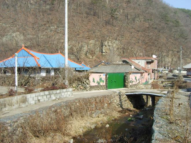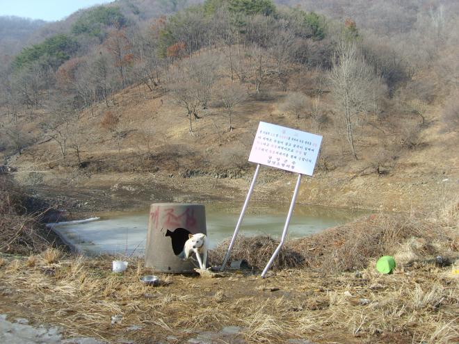 ▲ 운산마을 가장 깊은 곳-송산골. 송산골에는 식당과 민가 2채가 있다. 그 위로 태권도센터와 송산저수지가 있으며 저수지 바로 옆에는 축사와 절이 생겼다. 사진은 송산저수지.