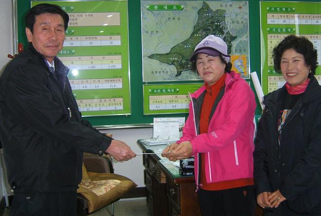 장추자 회장은 지난 8일 봉산면사무소를 찾아 소외된 노인들을 위해 싸달라며 20kg 들이 쌀 16포를 송종수 면장에게 전달했다.(사진)