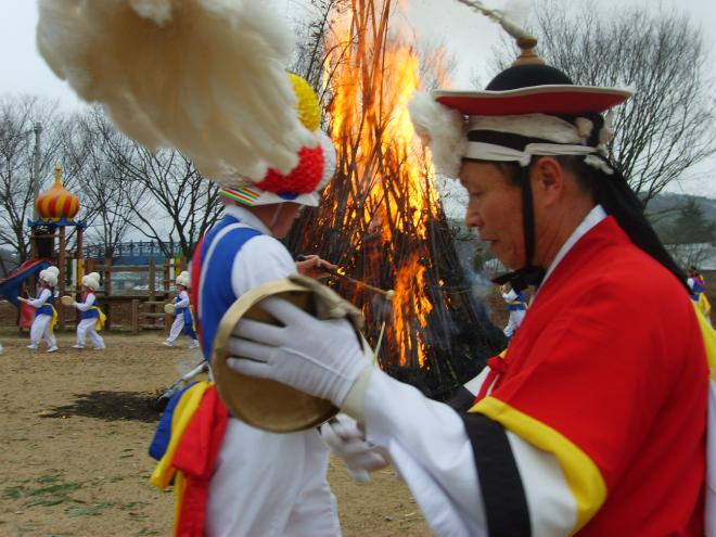 한편 당산제는 마을의 조상신이나 수호신에게 지내는 제사로 대개 음력 정월대보름과 정초에 지내는데 제사와 굿의 이중성격을 갖고 있는 점이 특이하며 축제 분위기로 마을사람들의 유대강화에 기여했다./정종대 記者