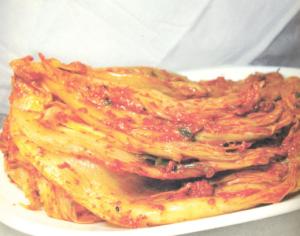 소금과 젓갈에 젖은 김치 먹을 때