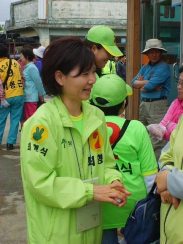 사실 군수 후보자의 부인이지만 거리 유세에 직접 나서는 게 쉬운 일은 아니다.