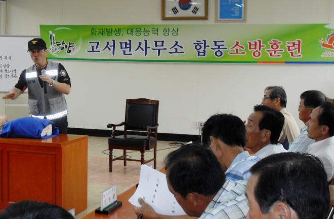 이날 합동소방훈련에는 고서면 공직자와 이장단, 일반주민 등 60명이 참여했으며 화재발생 상황에 따른 신속한 대응 요령 교육과 함께 심폐소생술에 대해 배웠다.