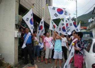 한국자유총연맹 담양군지회(지회장 송제현)는 지난 12일 담양군지회회의실에서 각읍면 간부 등 30여명이 참석한 가운데 연석회의를 갖고 광복 65주년을 맞아 자유 민주주의를 기본이념으로 국권회복을 지역민들과 함께 경축하고 선열들의 숭고한 독립정신을 계승 발전시키기 위해 태극기 나눠주기 운동을 전개했다. /송윤정 記者