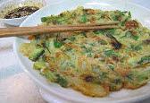 팬에 콩기름 두르고(부침개를 아삭하게 부치려면 그 어떤 기름보다 콩기름이 좋다는 저의 부침개철학이랍니다.) 알맞게 달궈진 팬에 부침개반죽을 한 국자 듬뿍 떠서 놓으면 치~익 하는 소리가 왜 그렇게 좋은지요.
