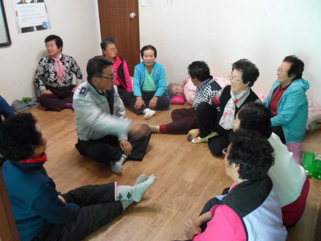 또 이날 오후에는 대전면 갑향리 노인정을 방문해 마을 어르신들에게 야간보행 시 주의사항과 무단횡단 금지 등 교통사고 예방 교육을 실시하고 대낮 빈집털이 예방을 홍보하는 등 주민생활 안정에도 노력을 기울이고 있다. /서영준 記者
