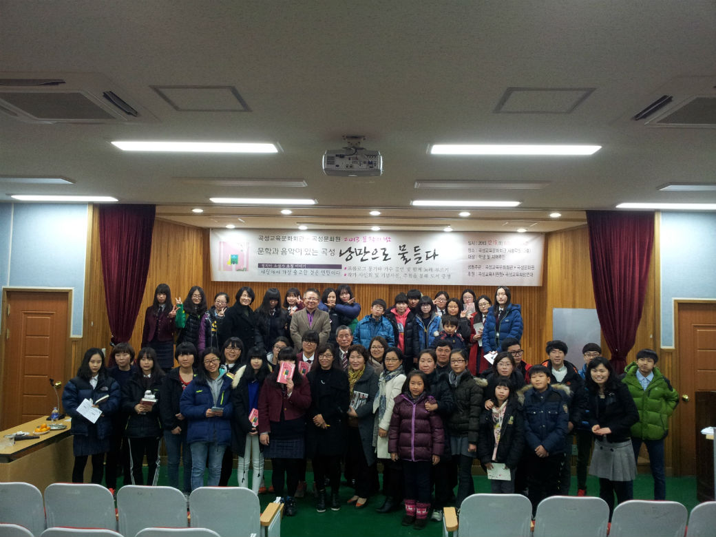 따뜻한 화톳불이 생각나는 12월의 끄트머리에 곡성교육문화회관(관장 정찬선)은 소설과 음악을 사랑하는 학생과 지역주민 100여명을 대상으로「문학과 음악이 있는 곡성, 낭만으로 물들다」라는 주제의 ‘2013 문학의 밤’을 곡성문화원과 공동으로 개최했다.