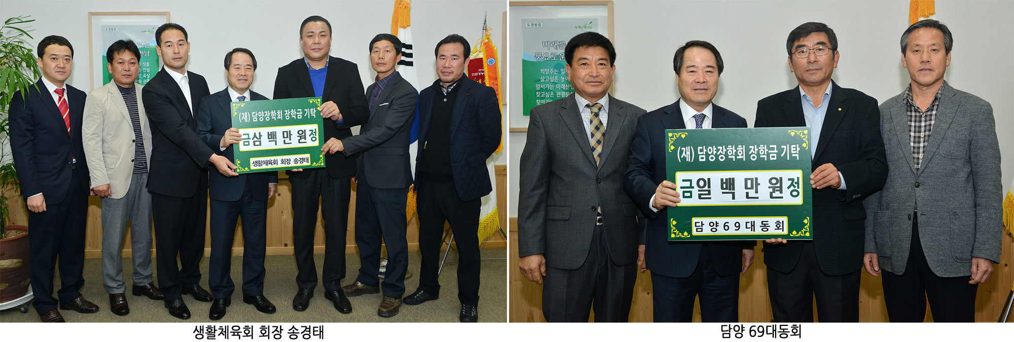 또한, 담양69대동회는 지난해에도 1백만원의 장학기금을 기탁한 바 있으며 지역과 후배를 위한 마음을 가지고 관심을 쏟고 있다.