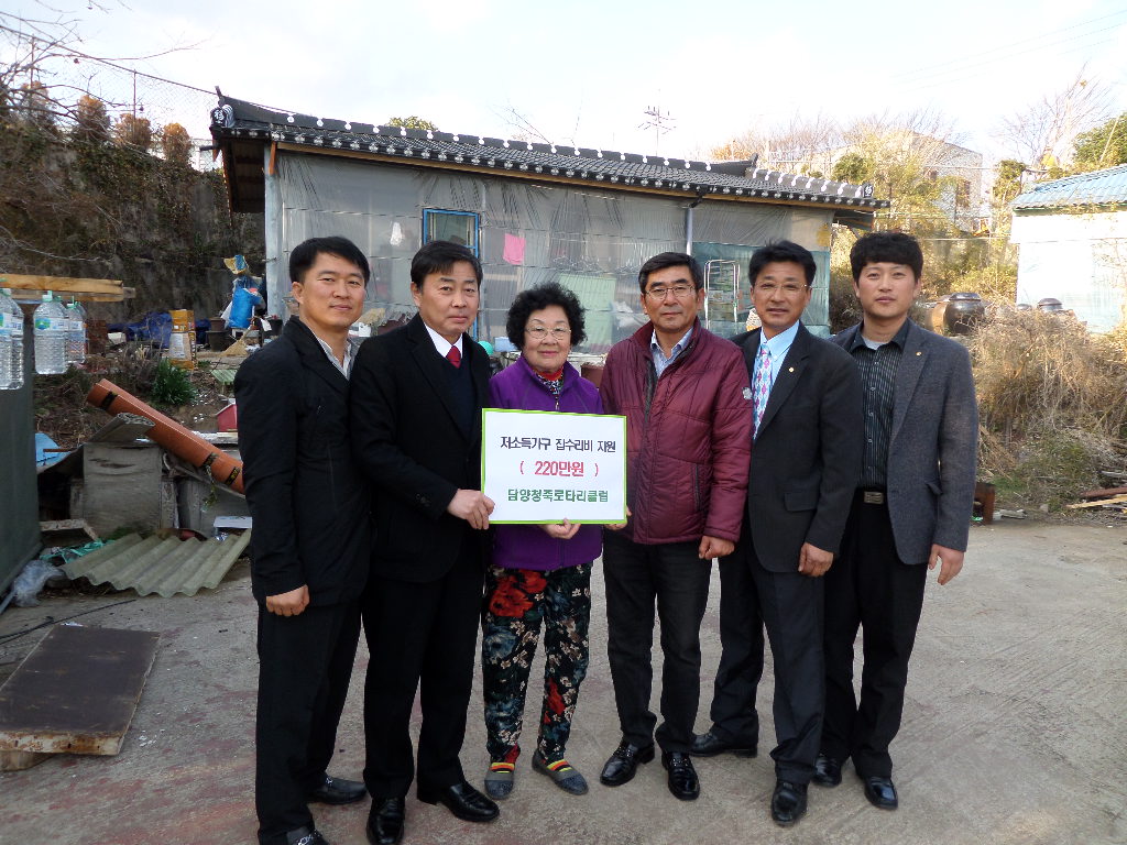담양청죽로타리클럽(회장 오흥영)이 대전면 저소득가정에 집수리비 220만원을 지원해 지역에 따뜻함을 전했다.